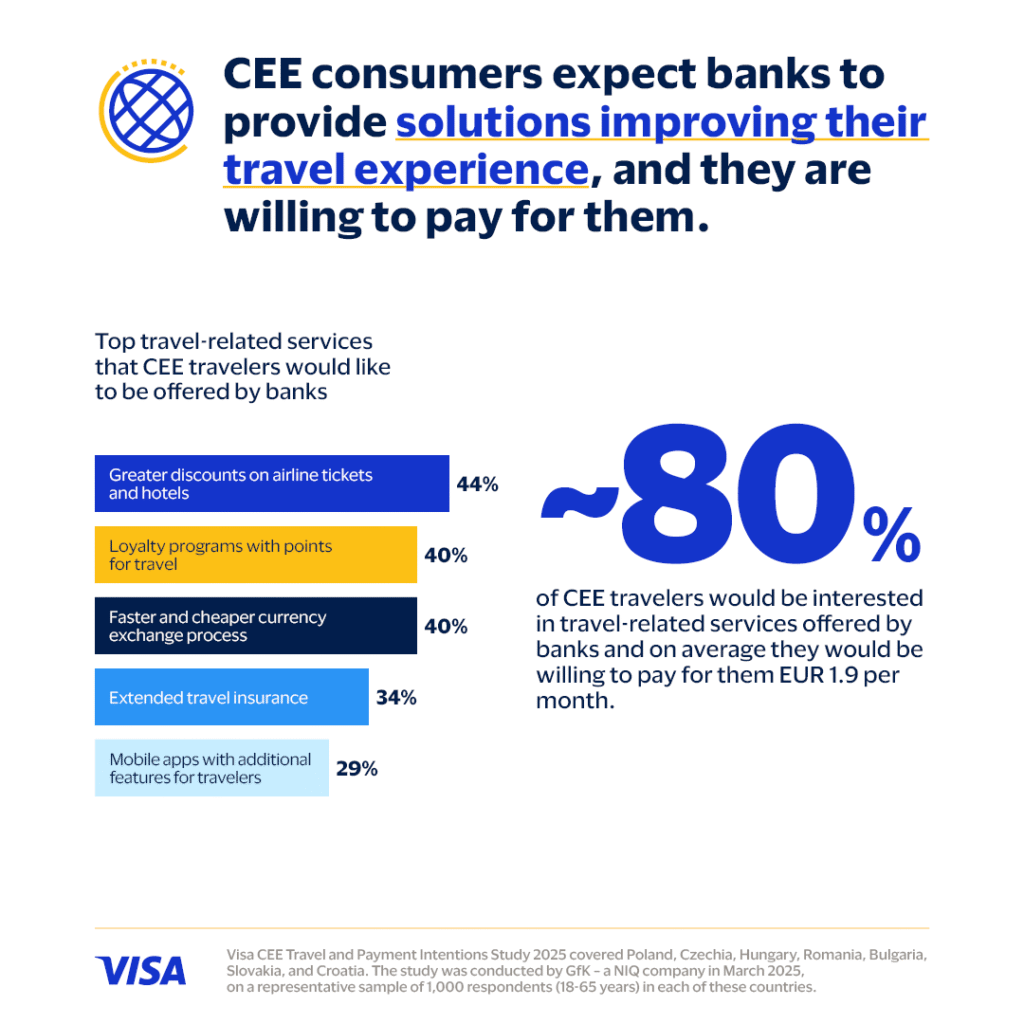 1 Unless another source is indicated, the data quoted in the above material comes from Visa CEE Travel and Payment Intentions Study 2025 which covered the following countries: Bulgaria, Croatia, Czechia, Hungary, Poland, Romania, and Slovakia. It was conducted by the research company GfK Polonia – a NIQ company in March 2025 on a representative sample of 1,000 respondents (18-65 years) in each of these countries.